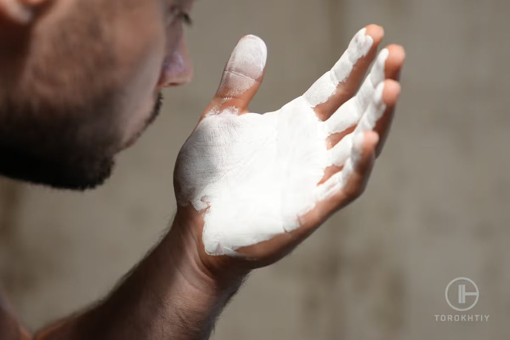 Sie wird in Sportarten wie Gewichtheben, Fitness, Kraftdreikampf, Turnen, Klettern und vielen anderen verwendet. Nach dem Austrocknen der Hände absorbiert es den Schweiß und verbessert die Reibung, so dass der Griff stärker, sicherer und fester wird.