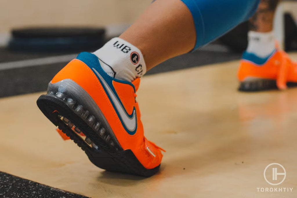 Die Hauptbesonderheit dieser Schuhe ist ein höherer Fersen-Zehen-Abstand - 8 mm. Einerseits kann dies für Athleten, die Probleme mit der Beweglichkeit der Knöchel haben, aber dennoch maximalen Komfort suchen, besonders bei Kniebeugen, von Vorteil sein. Die Dämpfung sorgt außerdem für ein angenehmes Tragegefühl und einfache dynamische Bewegungen. Andererseits mögen Sie einen solchen Absatz vielleicht nicht, wenn Sie absolute Stabilität bevorzugen. Dann sollten Sie sich lieber nach einer flacheren Sohle mit weniger Dämpfung umsehen.