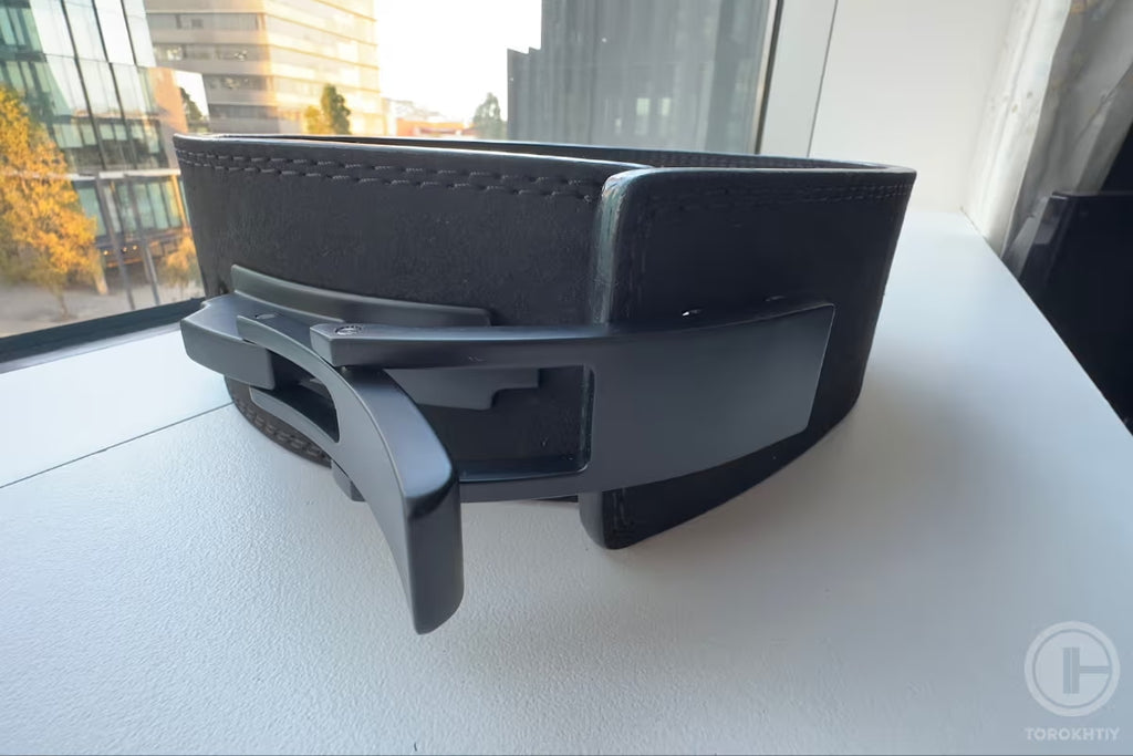 It’s a 4” belt all the way around, with no tapering. This makes it a powerlifting-focused choice, but too restrictive for weightlifting and fitness. You can squat and deadlift, but not to full depth, and not with dynamic exercises. The 5mm thickness is a little lighter than other 4” belts, too.