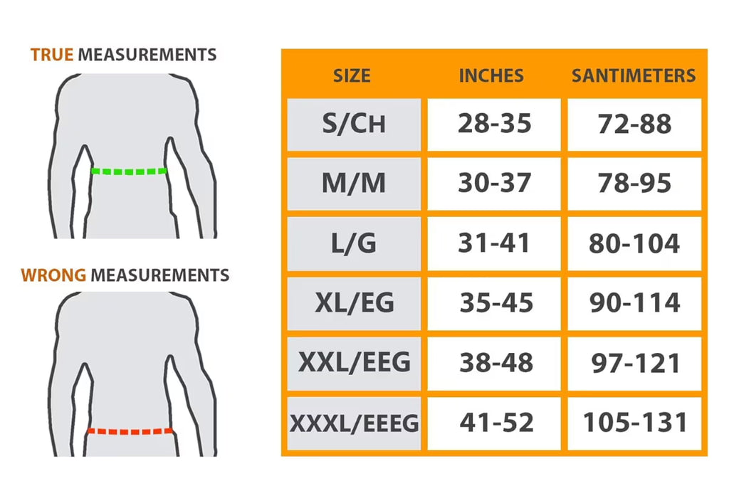 - Waist size range: 28” to 52”
