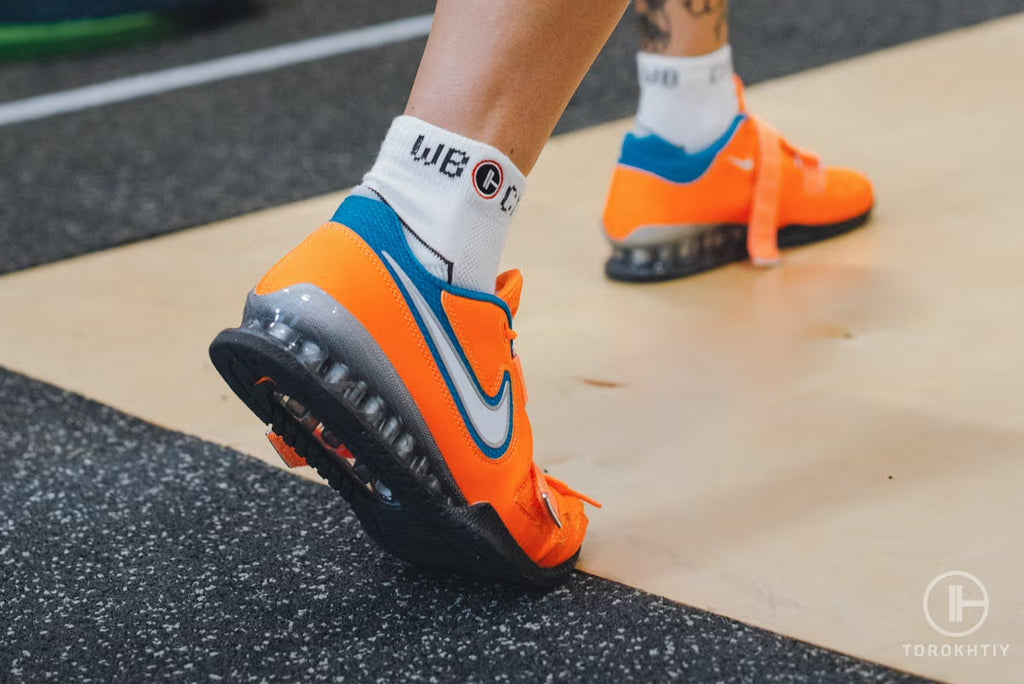 The biggest peculiarity is the heel height – 1.4” – which can be rarely seen among other weightlifting shoes. On the one hand, it might help athletes with poor ankle mobility to squat deep and maintain the proper mechanics. On the other hand, it might shift the gravity center to the toes, which is a pretty common mistake in the gym.